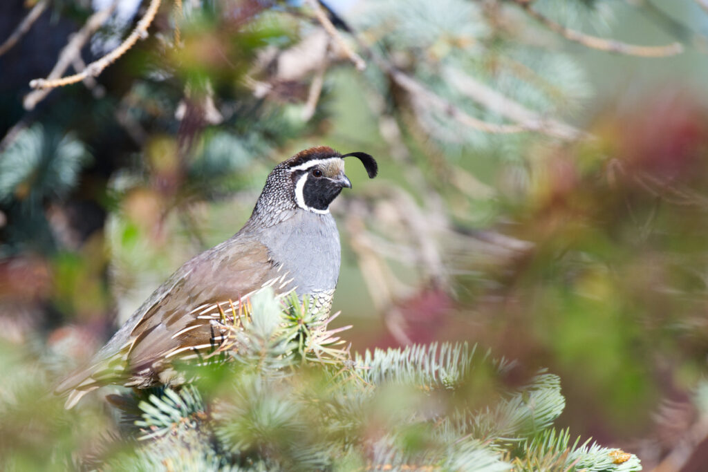 Most people are not aware that the Salt Lake Valley has a healthy population of California Quail that live mostly near the Jordan River. They run and fly quickly and it is difficult to catch them in a photograph. But I must have been doing something right on this morning when this one flew up into this tree and gave me an ample three seconds to get this shot before it flew down to the river.