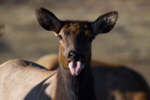 I had been photographing this elk herd for about an hour, and had just finished a video of the herd of cow elk, when this one decided to stick her tongue out at me. The nerve!
