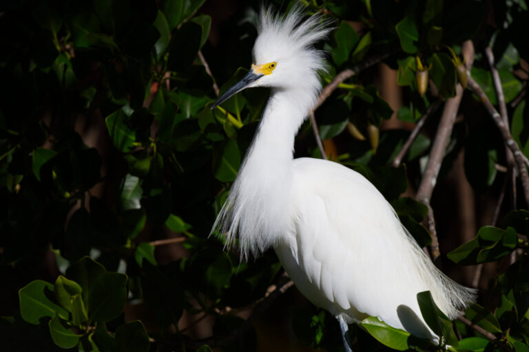 This snowy egret was along the road near Tampa, Florida and I caught this picture right as it poofed out all its feathers like a rockstar hairdo!