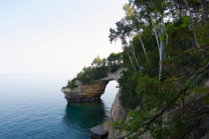 The Picture Rocks Arch, with some trees and lush vegetation above, gives it a fresh perspective and is truly beautiful.