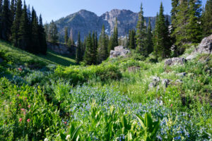 I hiked up this place in Little Cottonwood Canyon several times this year, and on this particular time I just had to take my wide angle lens and get some shots of these flowers with the trees and mountains in the background.